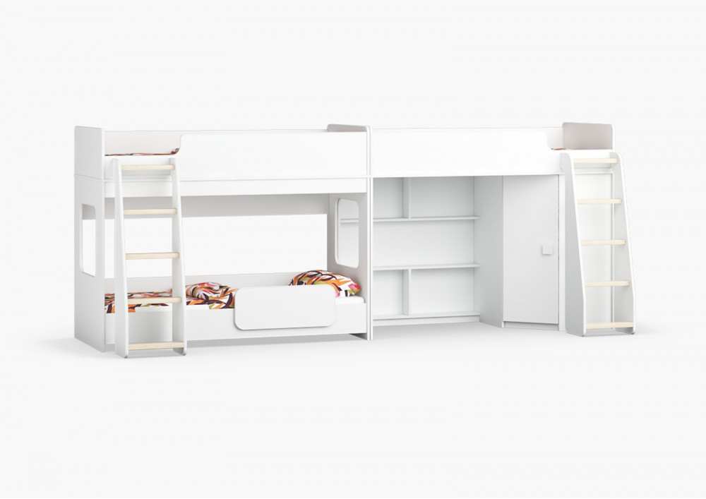 Трехъярусная кровать Легенда 42.4.3 - решение для троих детей с угловым шкафом.
