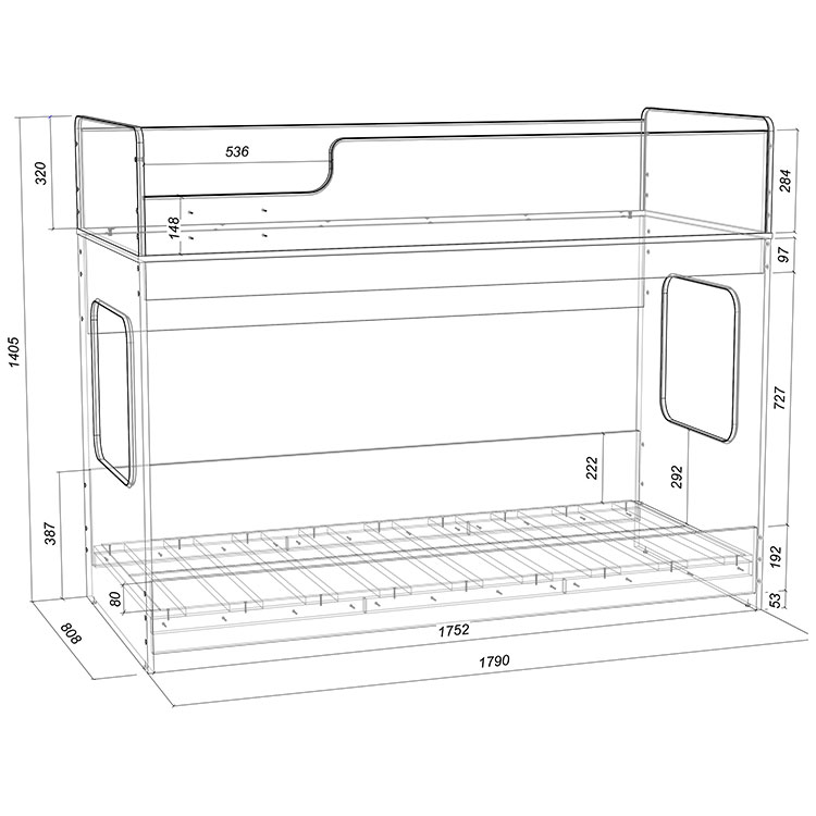 Двухъярусная кровать Легенда 42.4 с двумя параллельными спальными местами размером 1750х750.