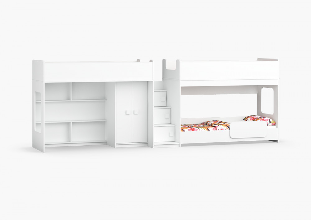 Две кровати, шкаф, игровая зона – одна лестница. Идеальный вариант для троих!